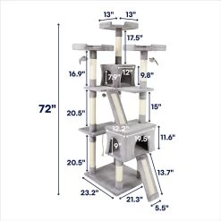 - From Frisco by Chewy. Heavy-duty cat tree features a scratching post, built-in fluffy toy and comfy bed.