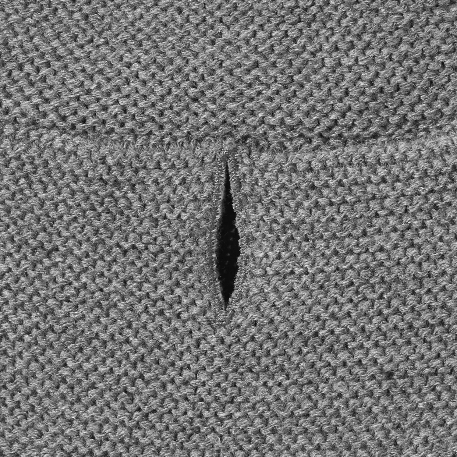 - Grey knit sweater with cozy sherpa lined hood.