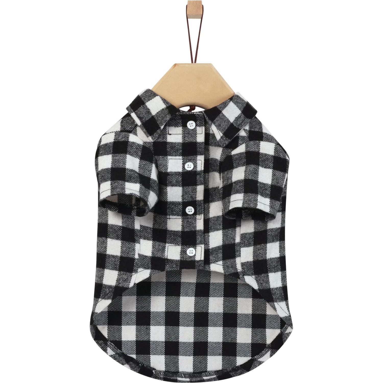 - From Frisco by Chewy. Give your furry friend the style boost they need for the season with this black plaid shirt.