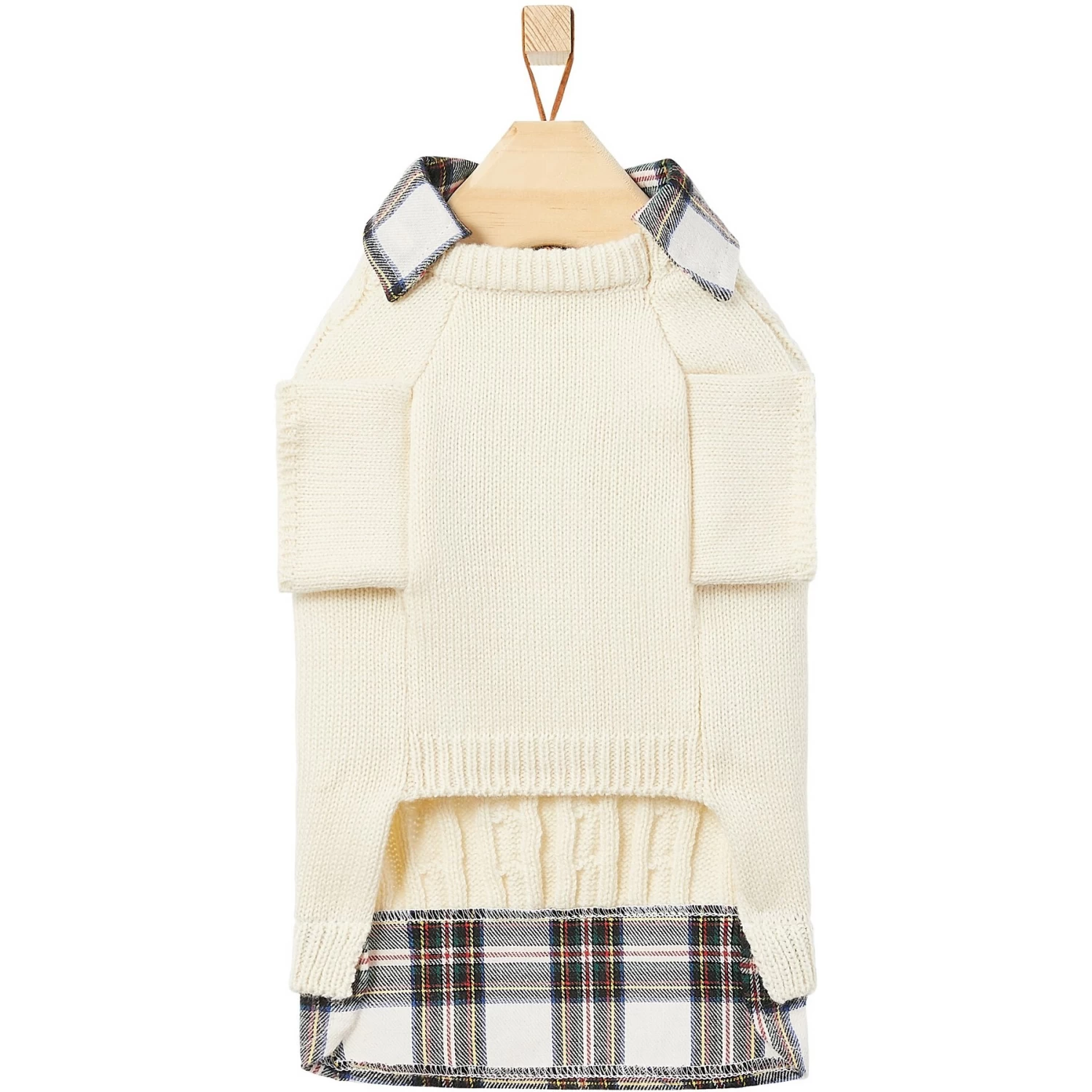 Frisco Cream Cable Knit Dog & Cat Sweater, White/Red Plaid