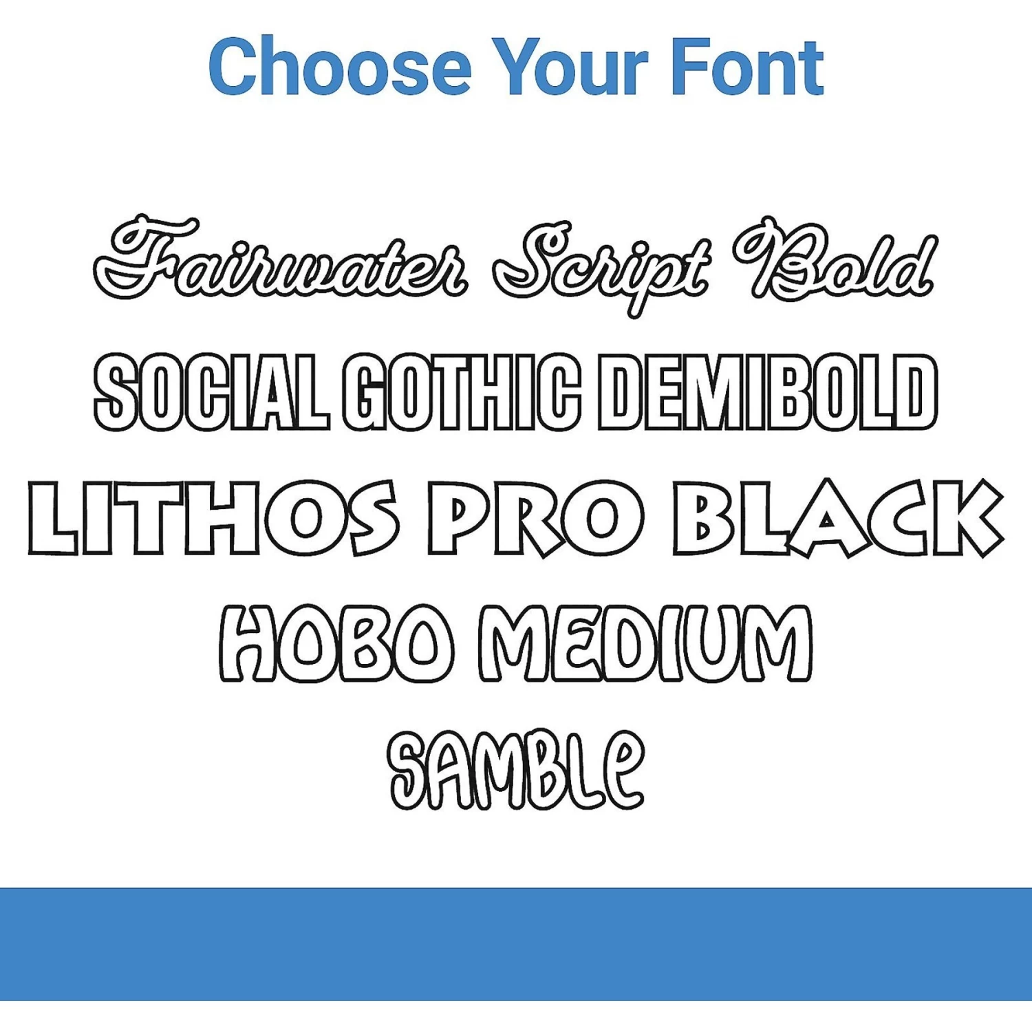- Personalizable design allows you to add a single line of text up to 13 characters long in one of five fonts.