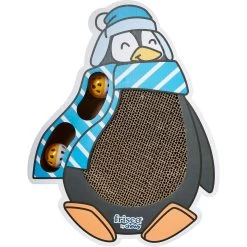 - Features an irresistible scratch pad (that looks like an adorable winter-themed penguin) made with corrugated cardboard that shreds easily without catching, to satisfy your feline’s urge to scratch.