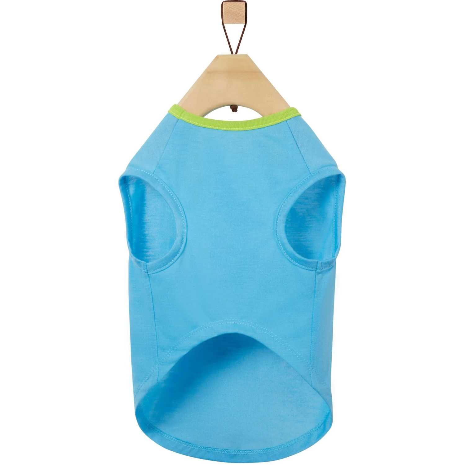 - Pet t-shirt comes in a blue color scheme and features three eggs that look like bunnies, perfect for Easter.