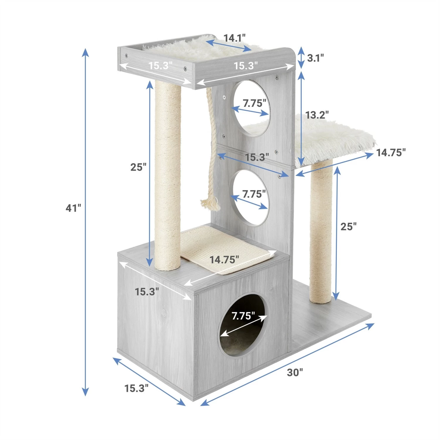 - 41-inch tall cat tree helps satisfy your catβs core needs at homeβplay and enrichment, vertical and horizontal scratching, privacy, comfort and elevated spots for napping and lounging.