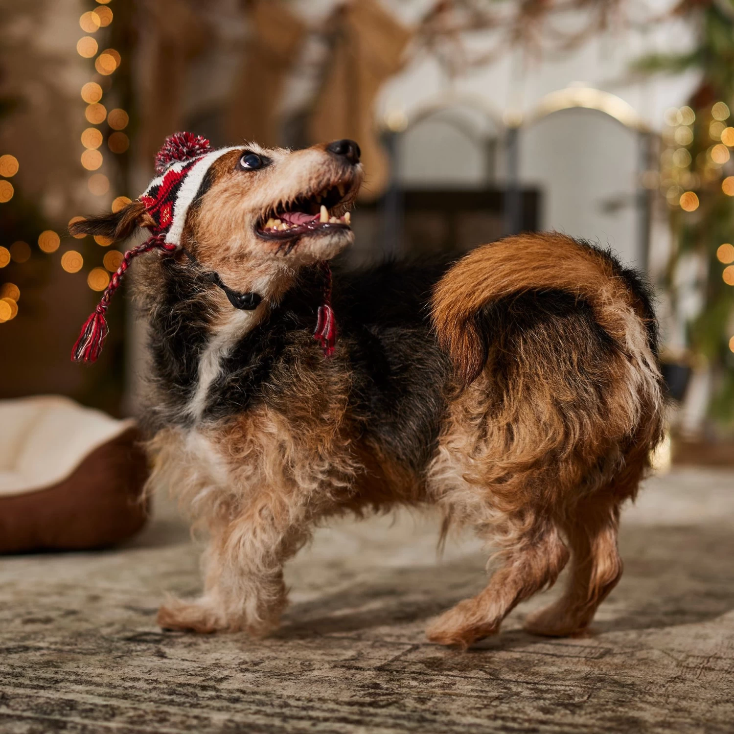 - The Nordic-inspired pawprint pattern of this classic winter hat features metallic gold accents and a decorative pom-pom on top that matches the equally adorable pet sweater, also from Frisco by Chewy. (745926)