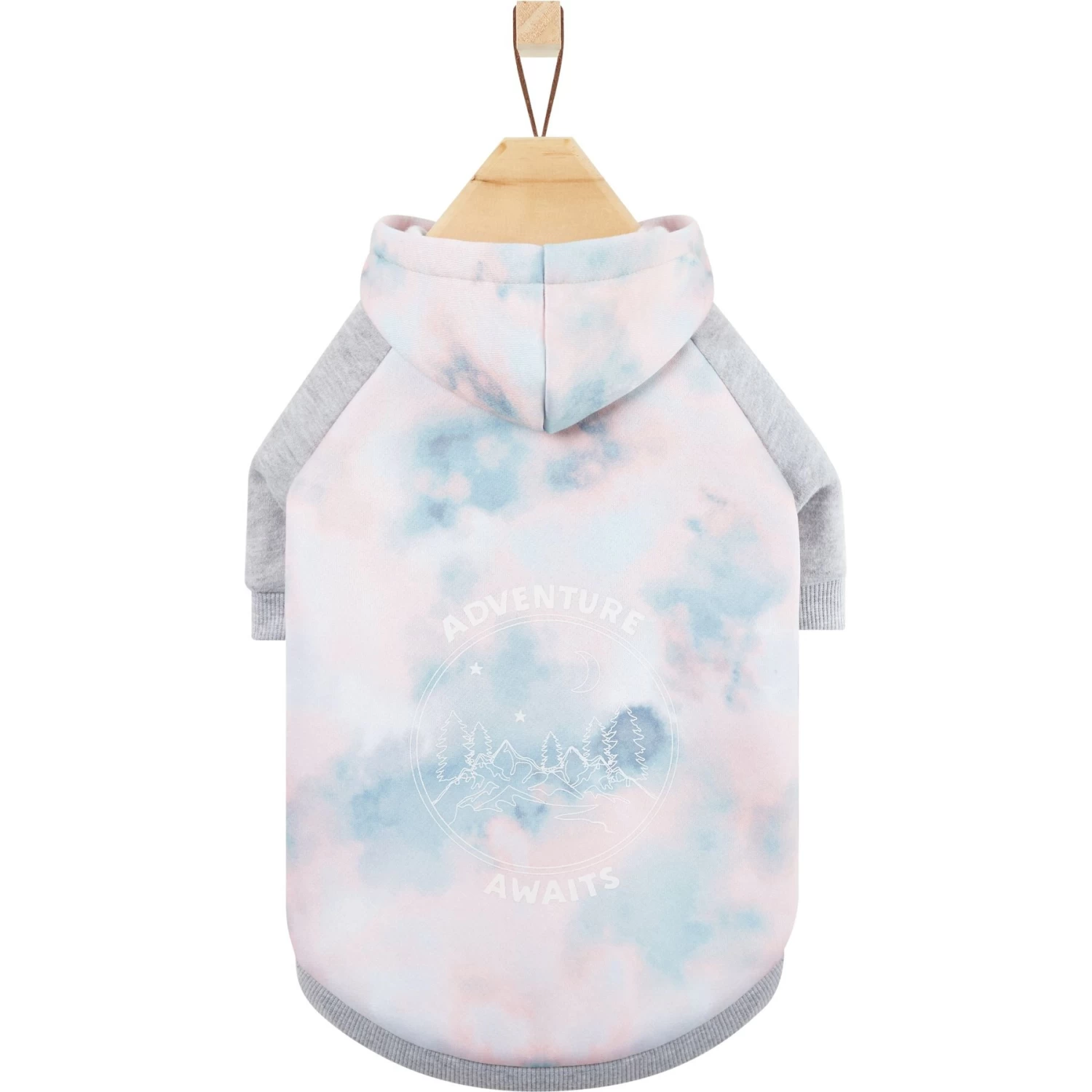 - From Frisco by Chewy. Think pink with this tie-dye wash hoodie. It’s a fun, eye-catching way for your pet to stay warm this winter while also keeping their mood mellow.