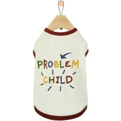 - T-shirt reads “Problem Child,” making it a cute and awesome staple in your pet’s wardrobe.