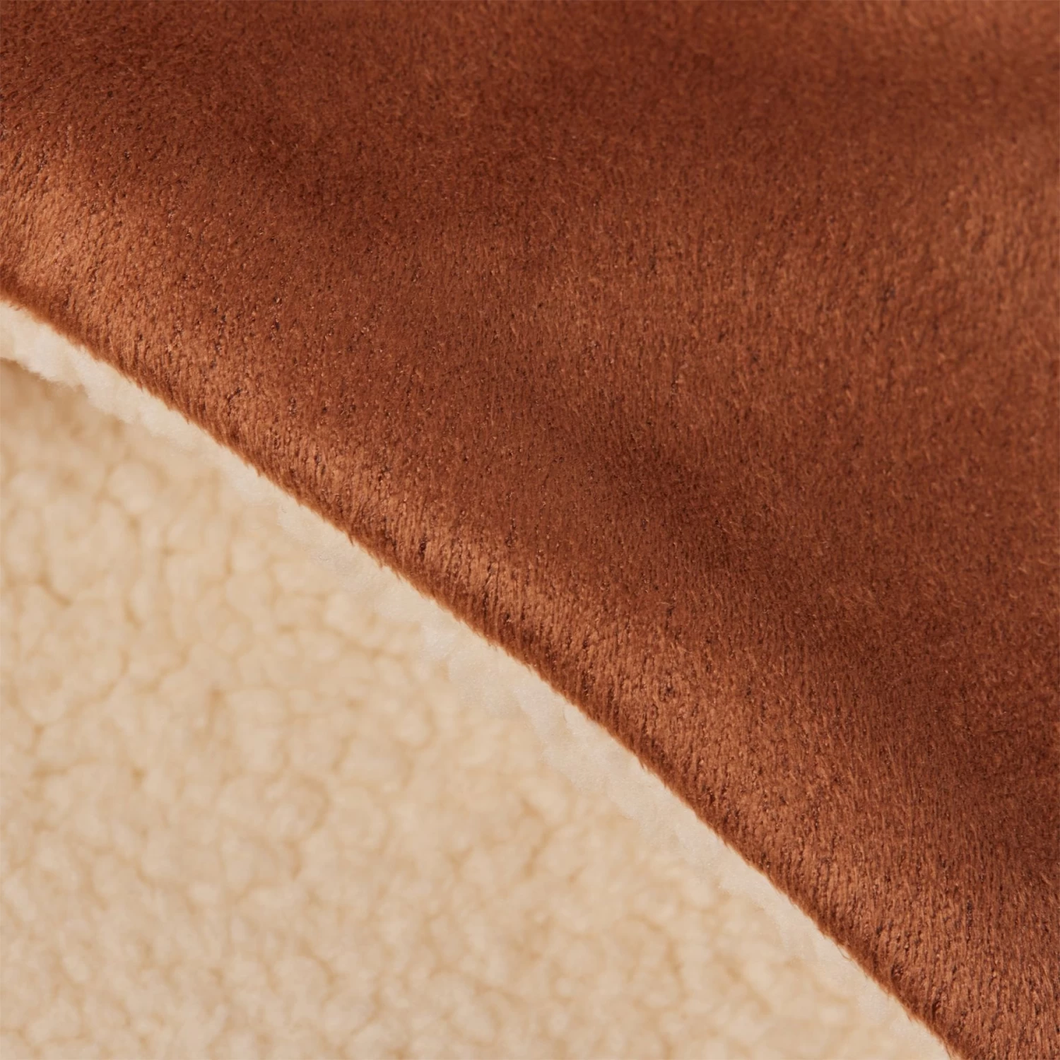 - Cream-colored faux fur on one side and brown, suede-like texture on the other for two sides of swagger.
