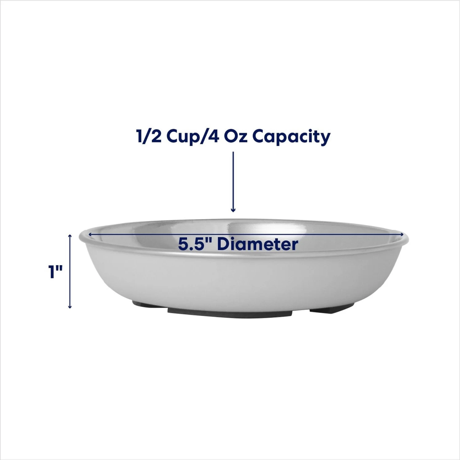 - Shallow, saucer-style design made just for cats keeps their whiskers clean while they chow down.