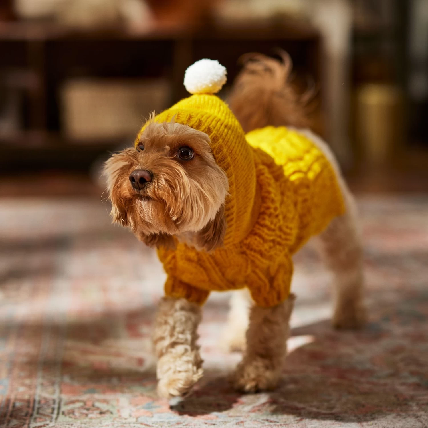 - The thick, luxurious cable-knit texture gives this pullover a refined quality that automatically ups your pet’s intellectual appearance.